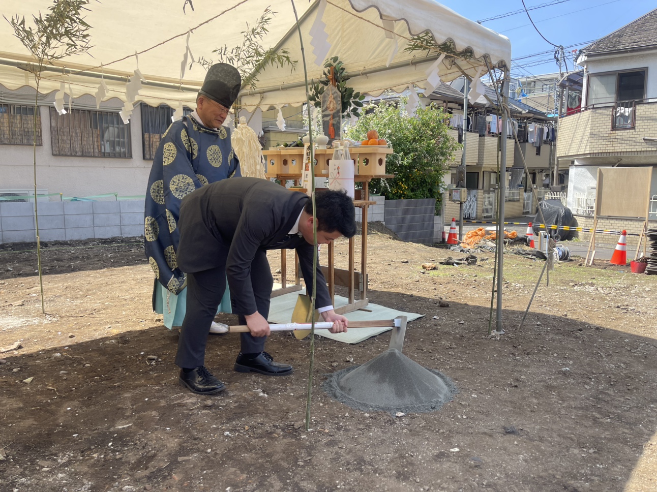 先日、工事の無事と建物の繁栄を祈念して、地鎮祭を執り行いました。